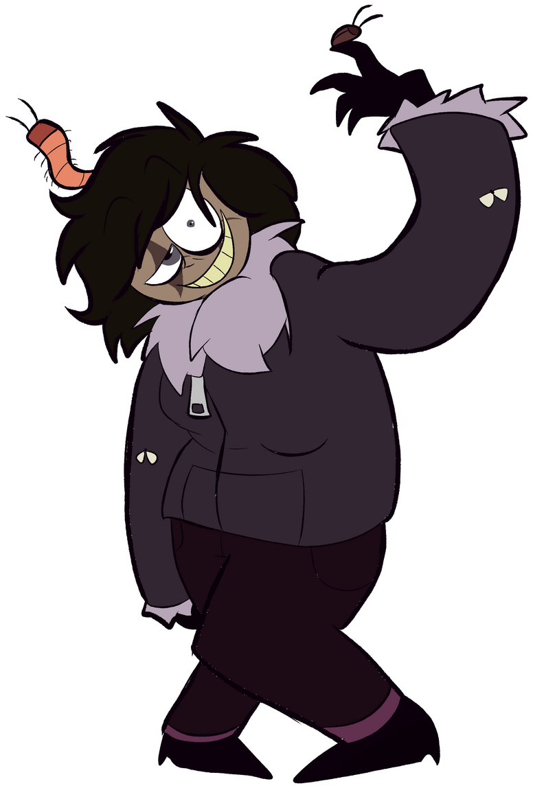 A rotting young girl is followed by bugs and a weird smell of old rotting meat, Cass is the leader of the gang, she's the one that keeps the group together and plan their crimes, her playful and charismatic personality might trick you into being comfortable around her, but trust, she's anything but stupid, she is 100% aware of what she's doing and what she can do, and if there's something she loves it's to toy with people.